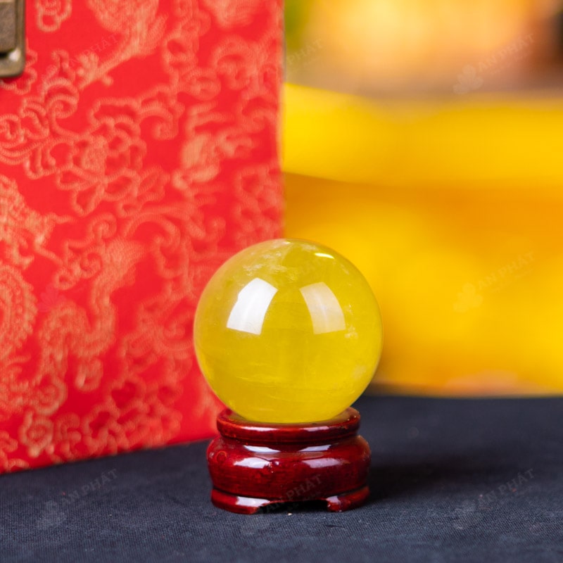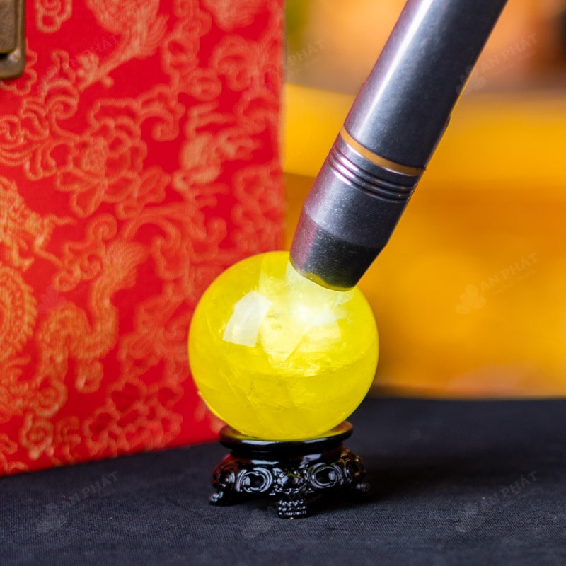 Ảnh cận cảnh quả cầu đá thạch anh vàng