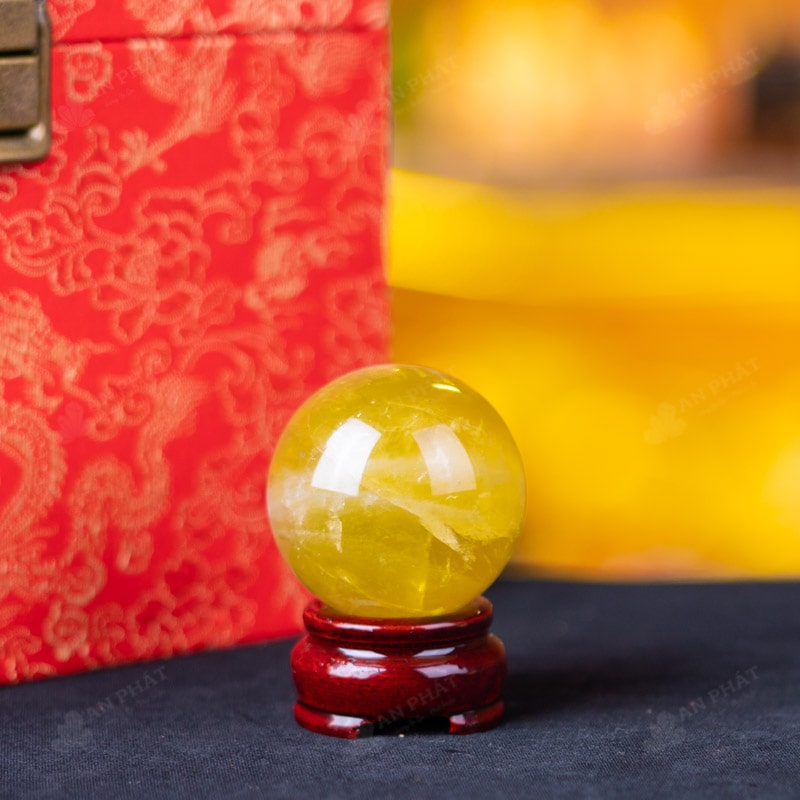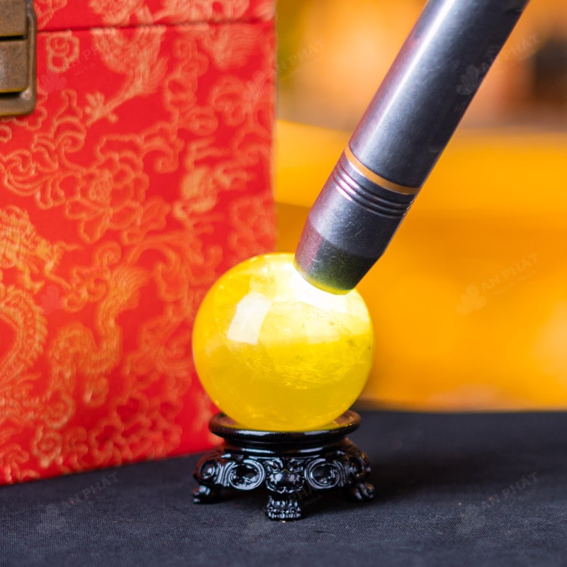 Ảnh cận cảnh quả cầu đá thạch anh vàng
