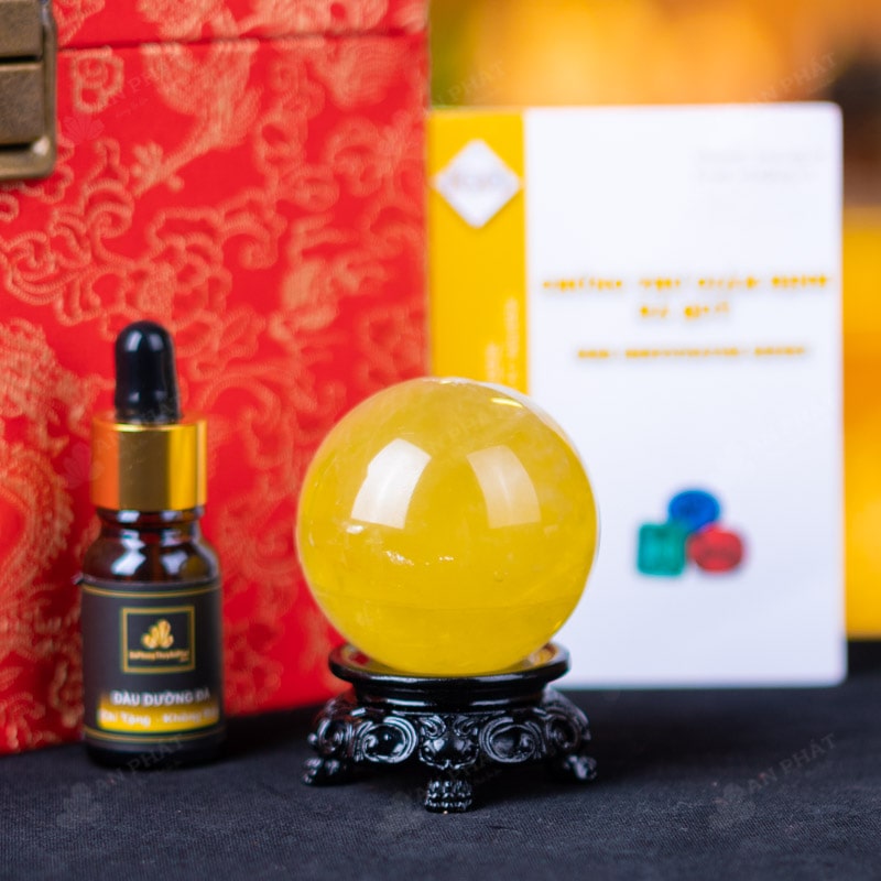- Trọn bộ sản phẩm bao gồm: quả cầu + 01 đế gỗ + hộp đựng sang trọng + túi giấy sang trọng + dầu dưỡng đá + giấy kiểm định chất lượng đá