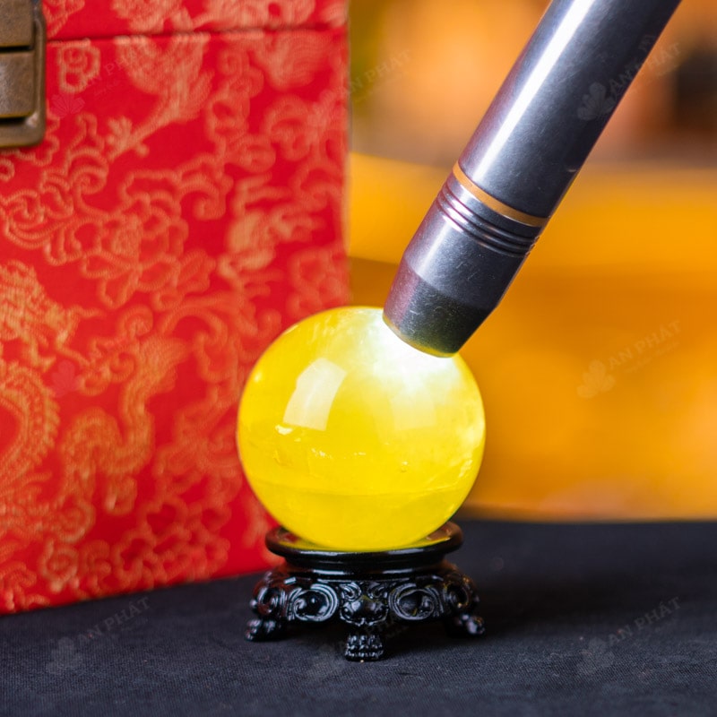 Ảnh cận cảnh quả cầu đá thạch anh vàng