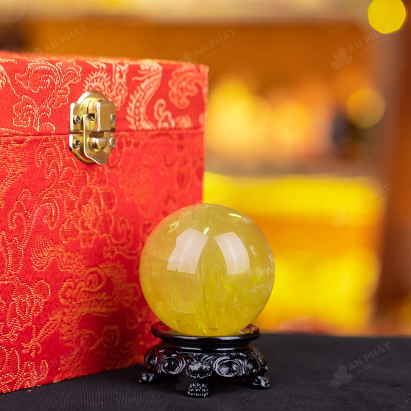 Ảnh cận cảnh quả cầu đá thạch anh vàng
