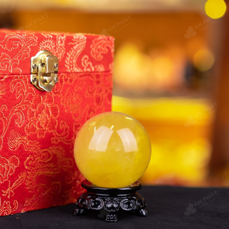 Ảnh cận cảnh quả cầu đá thạch anh vàng