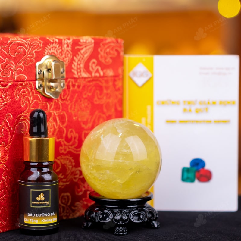 - Trọn bộ sản phẩm bao gồm: quả cầu + 01 đế gỗ + hộp đựng sang trọng + túi giấy sang trọng + dầu dưỡng đá + thiệp + giấy kiểm định chất lượng đá