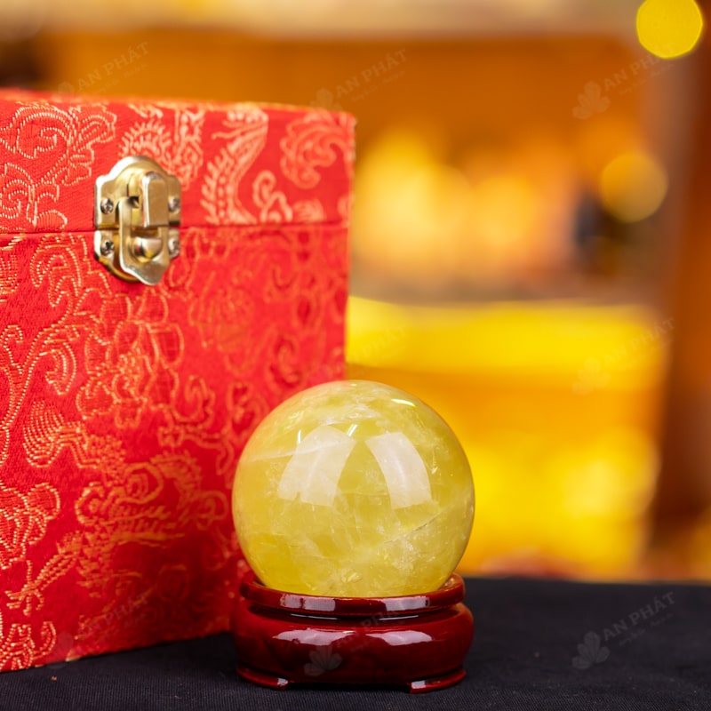 Ảnh cận cảnh quả cầu đá thạch anh vàng