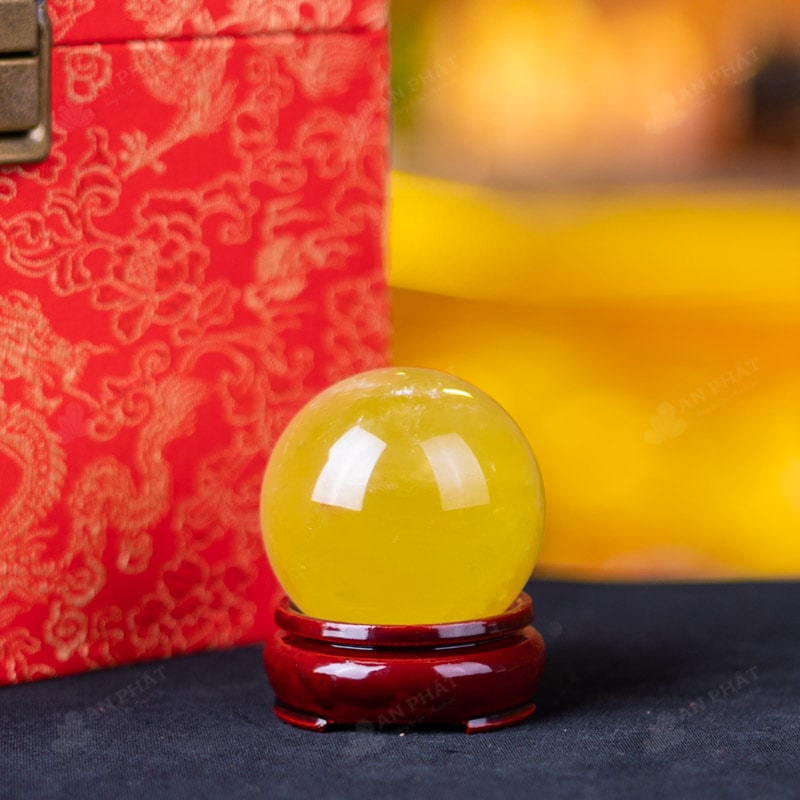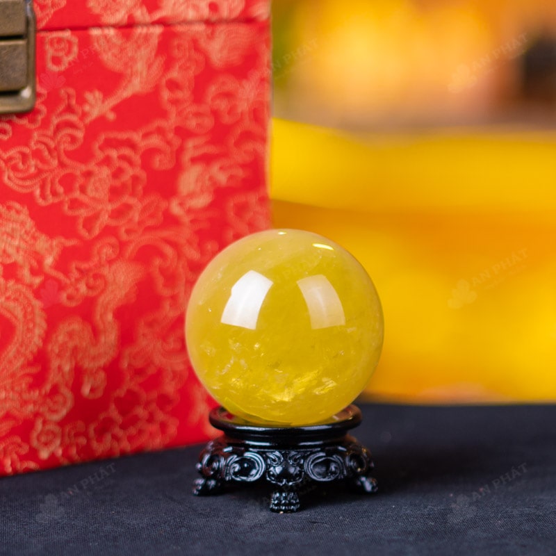Ảnh cận cảnh quả cầu đá thạch anh vàng