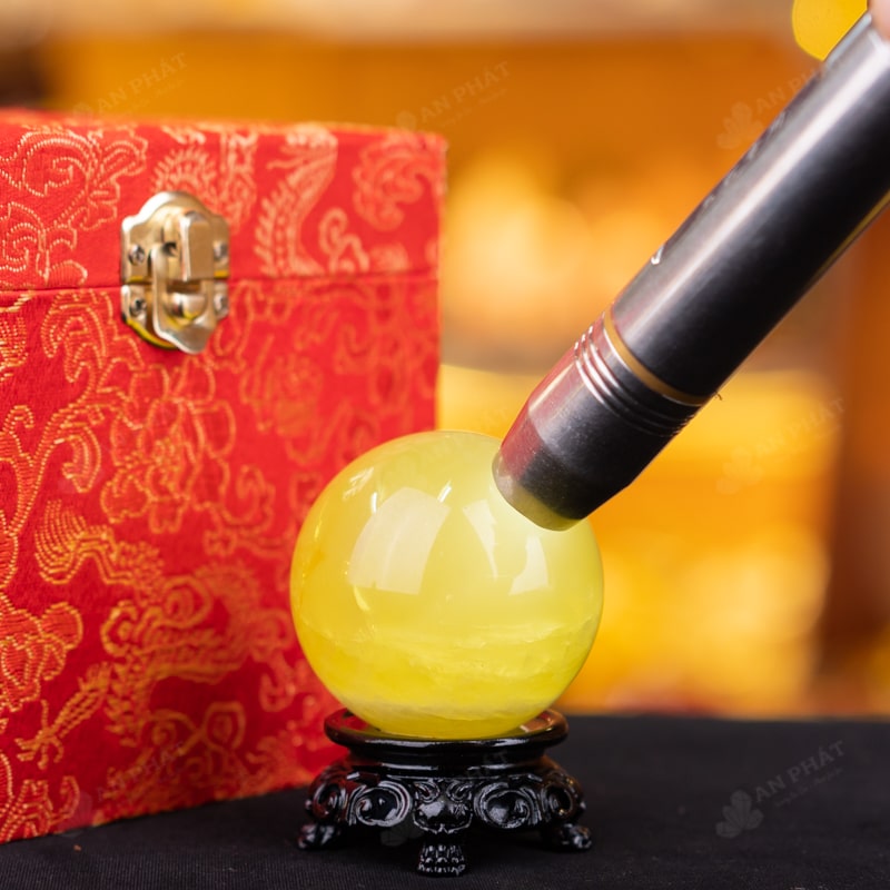 Ảnh cận cảnh quả cầu đá thạch anh vàng