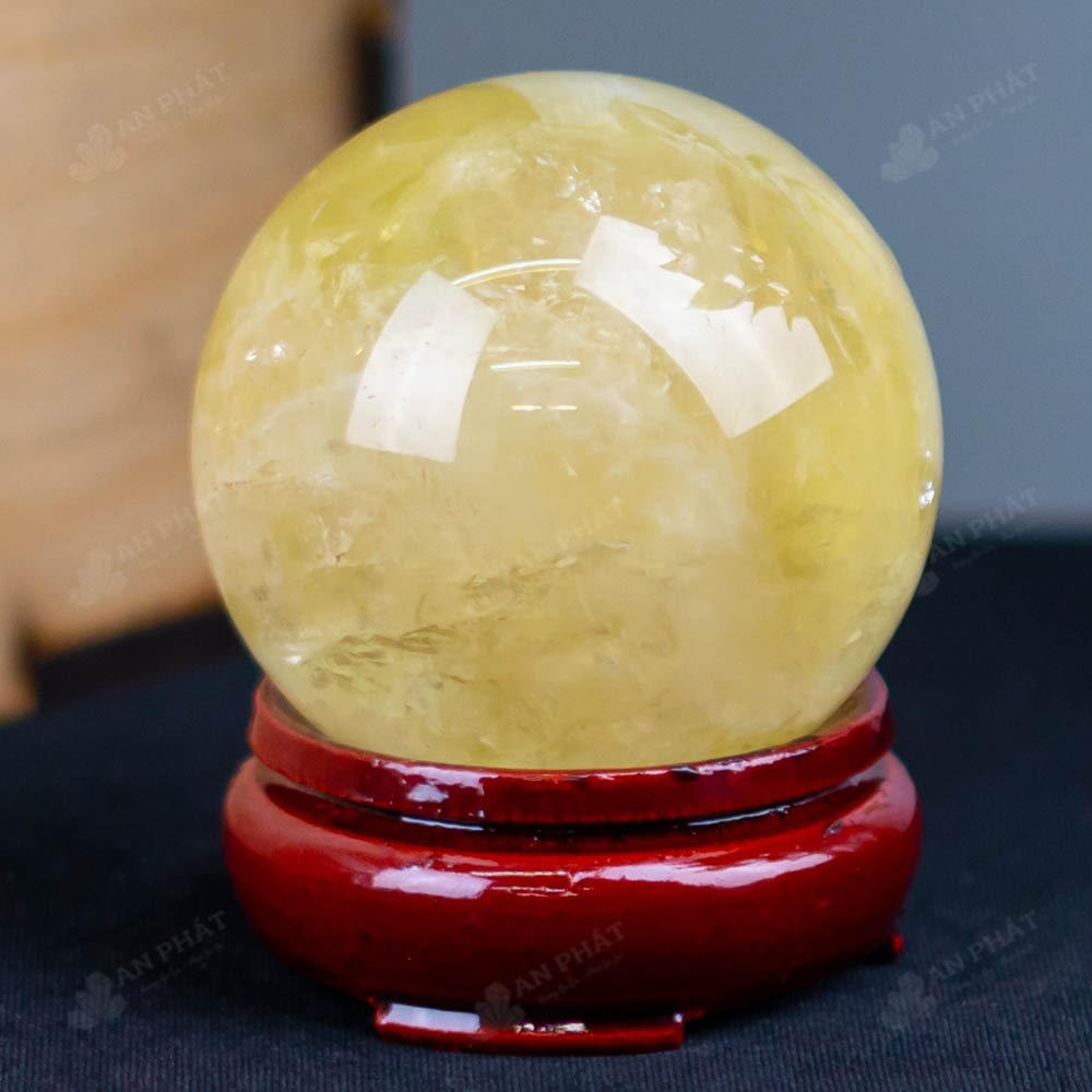 Cận cảnh quả cầu phong thủy đá thạch anh vàng