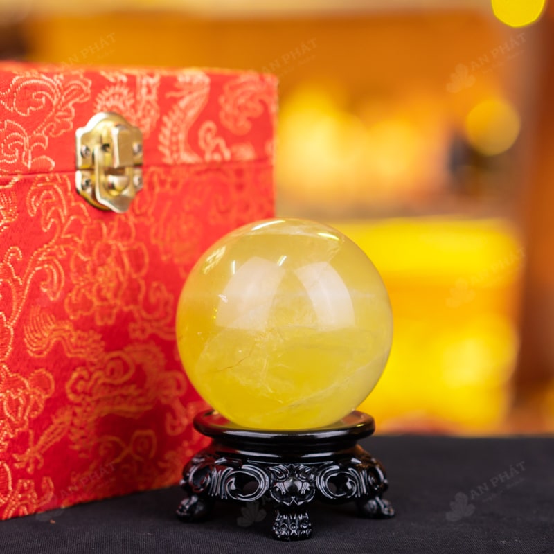 Ảnh cận cảnh quả cầu đá thạch anh vàng