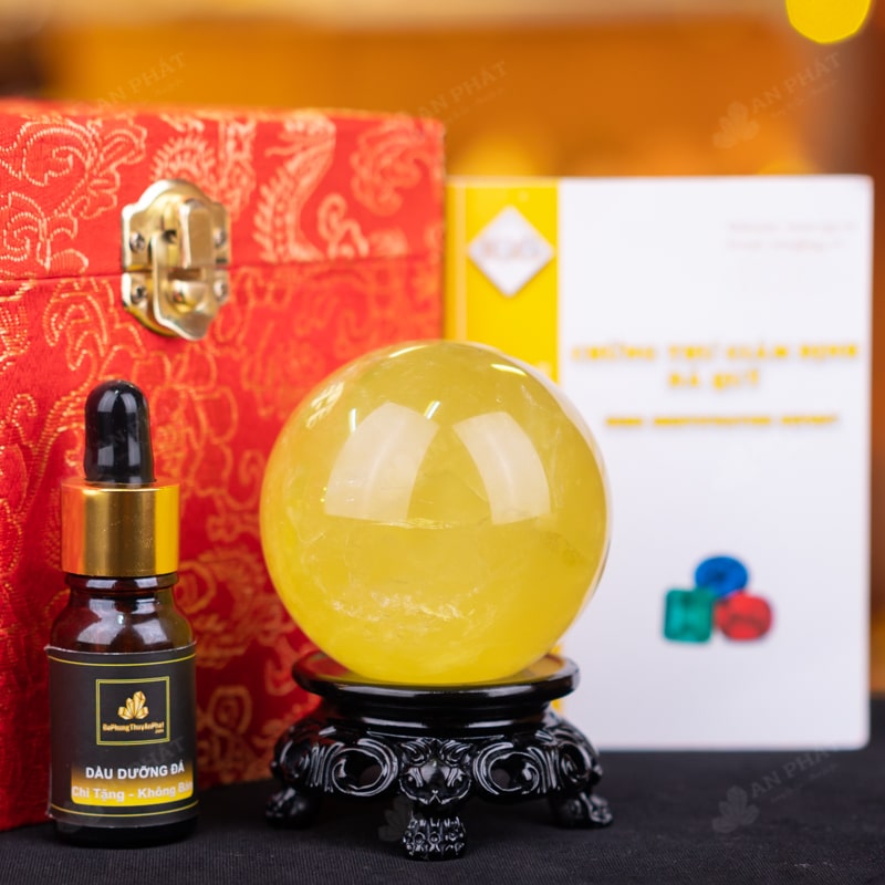 - Trọn bộ sản phẩm bao gồm: quả cầu + 01 đế gỗ + hộp đựng sang trọng + túi giấy sang trọng + dầu dưỡng đá + thiệp + giấy kiểm định chất lượng đá