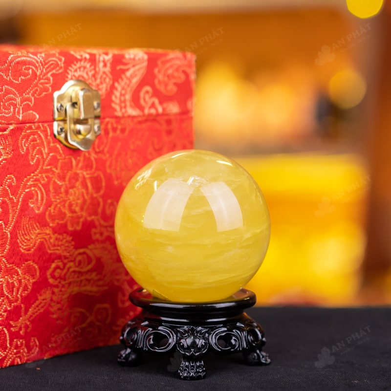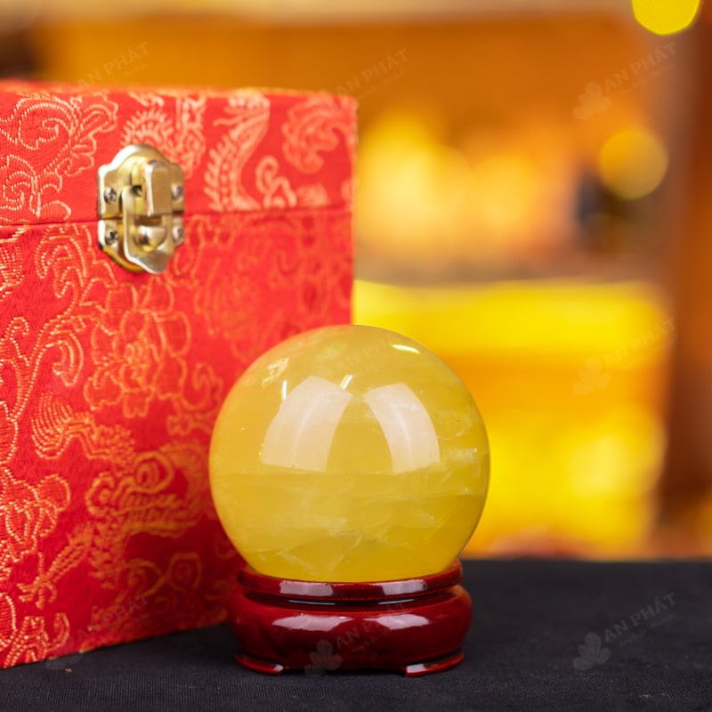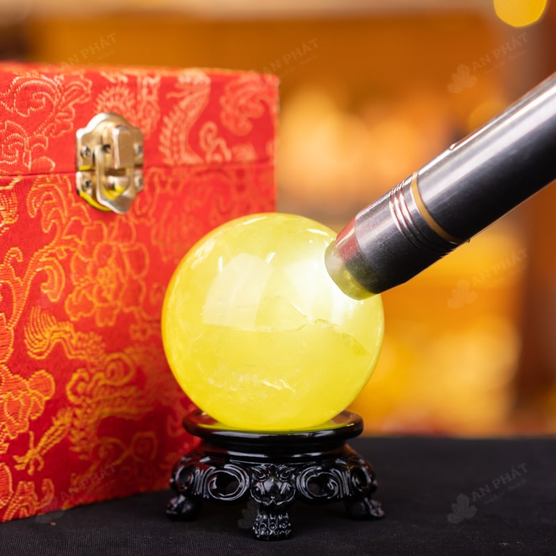 Ảnh cận cảnh quả cầu đá thạch anh vàng