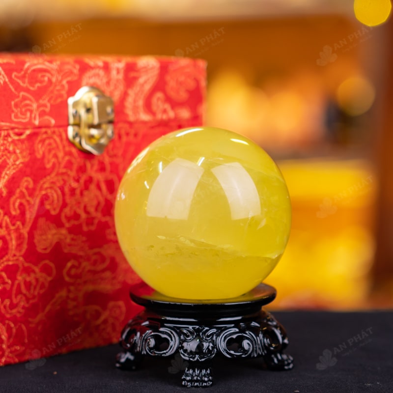 Quả cầu phong thủy đá thạch anh vàng