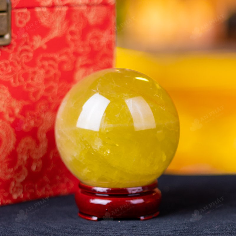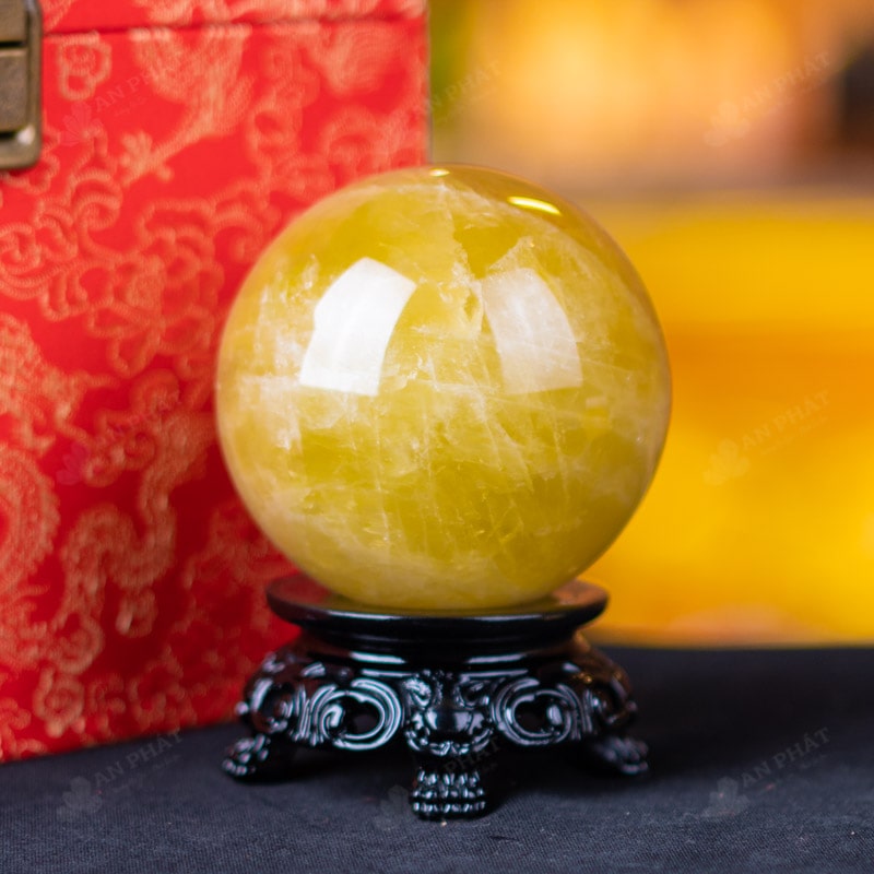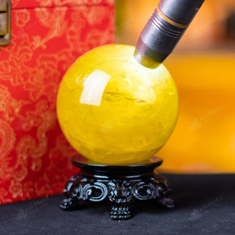 Ảnh cận cảnh quả cầu đá thạch anh vàng