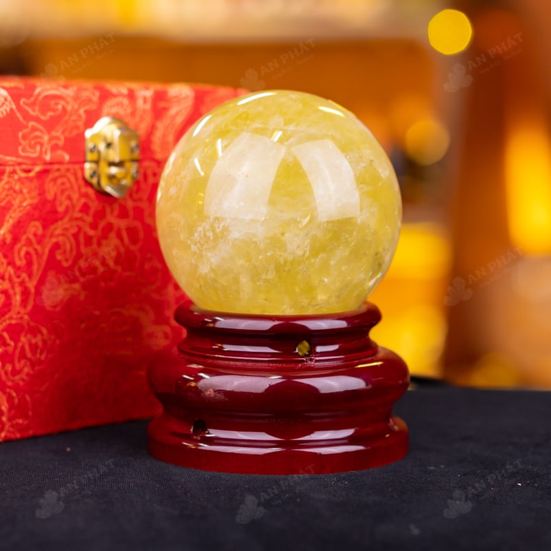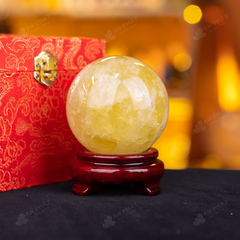 Ảnh cận cảnh quả cầu đá thạch anh vàng