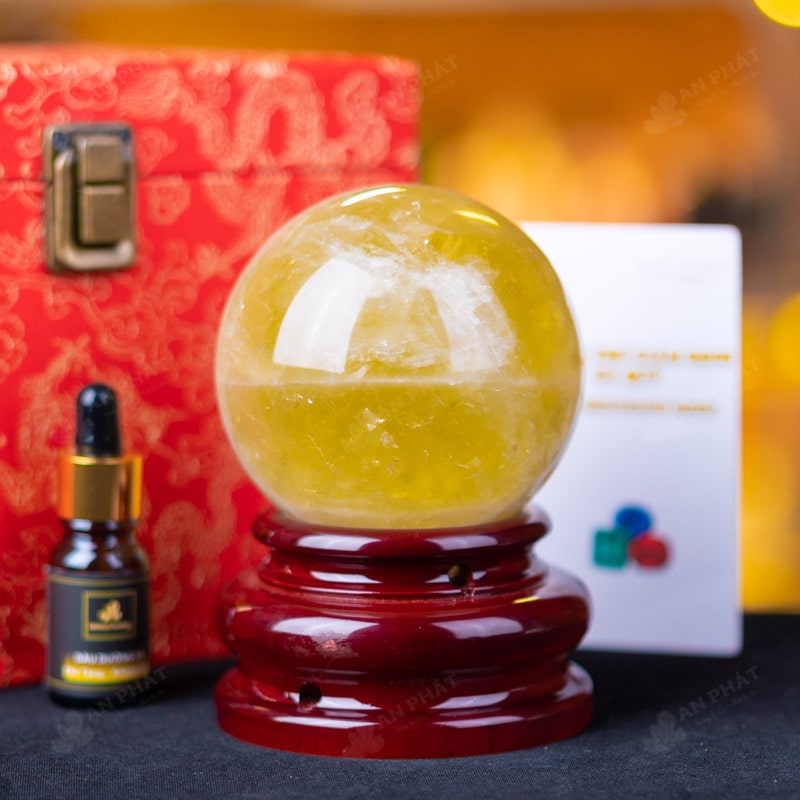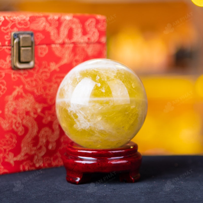 Ảnh cận cảnh quả cầu đá thạch anh vàng