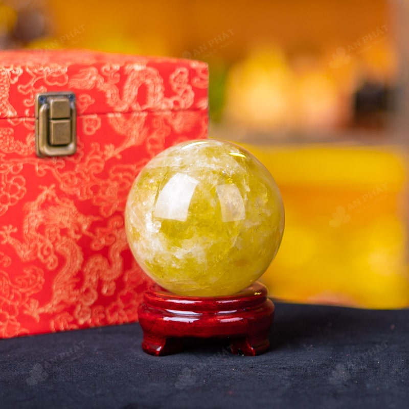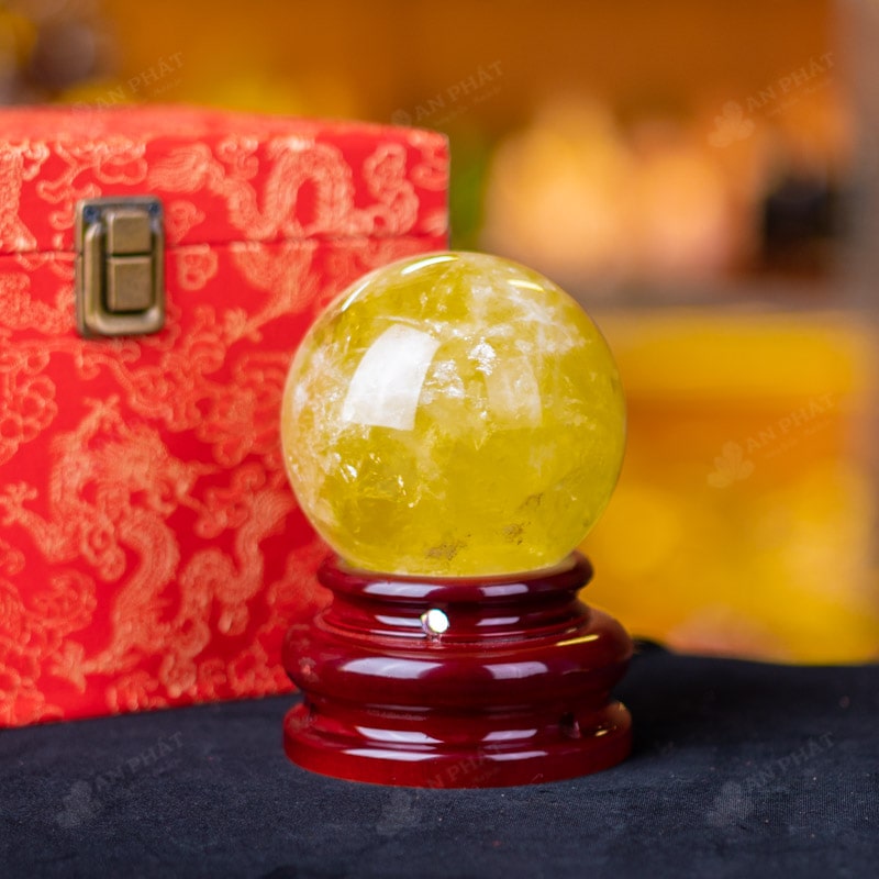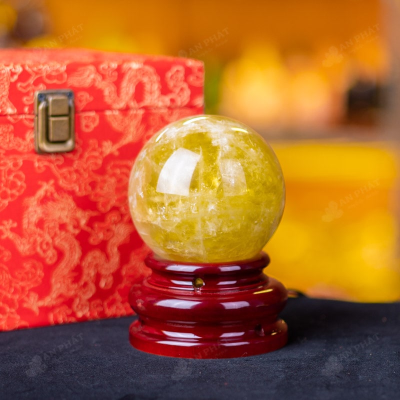 Ảnh cận cảnh quả cầu đá thạch anh vàng
