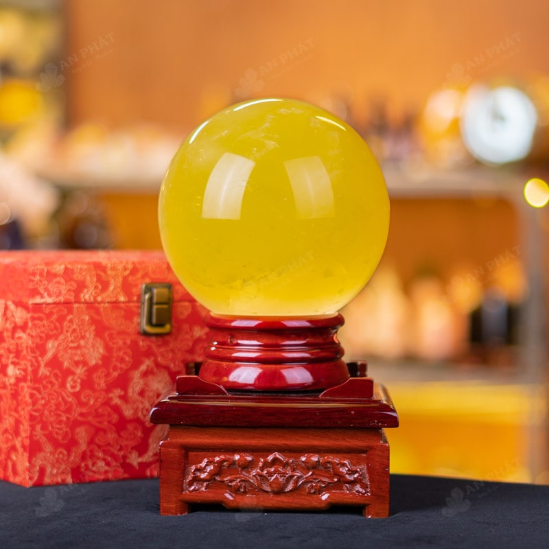 Ảnh cận cảnh quả cầu đá thạch anh vàng
