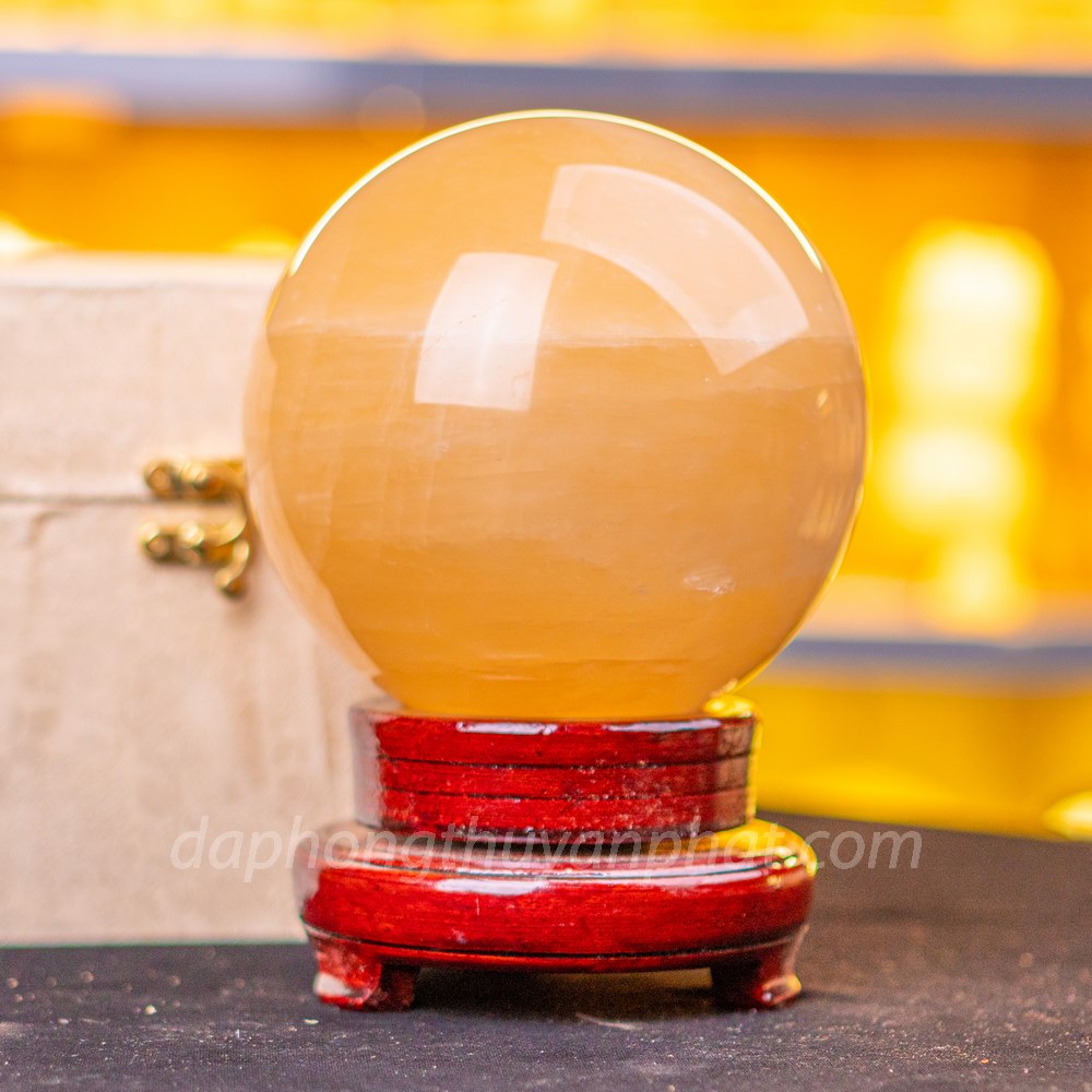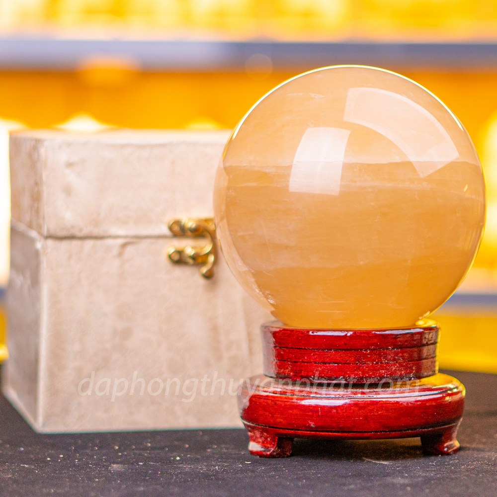 Qủa cầu tròn với ý nghĩa đem đến sự trọn vẹn, một cuộc sống như ý, công việc hanh thông thuận lợi. Đặc biệt đá canxit vàng toát ra một nguồn năng lượng tích cực. Giúp cho chủ nhân mở rộng các mối quan hệ hơn trong cuộc sống.