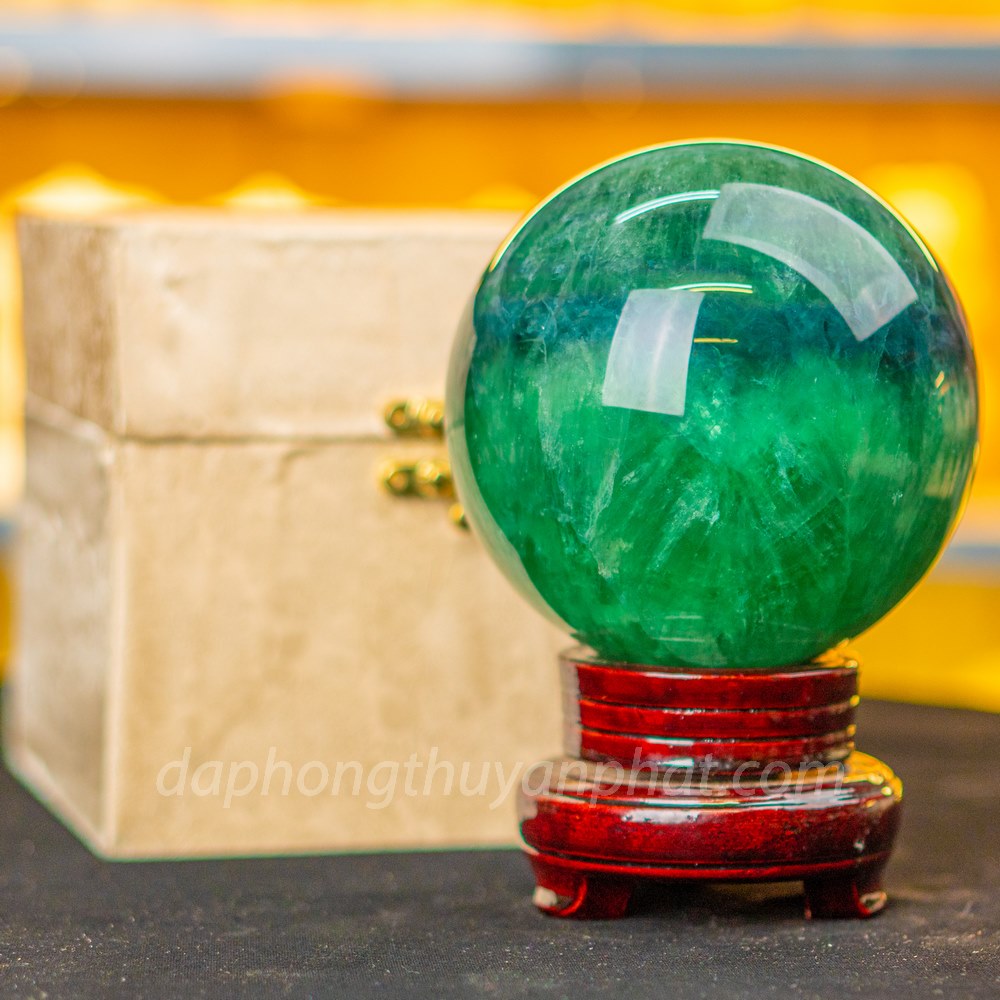 Qủa Cầu Phong Thủy Đá Flourite Xanh có tác dụng giải tỏa căng thẳng stress mang đến tài lộc may mắn, giúp cho công việc làm ăn phát đạt vạn sự hanh thông.