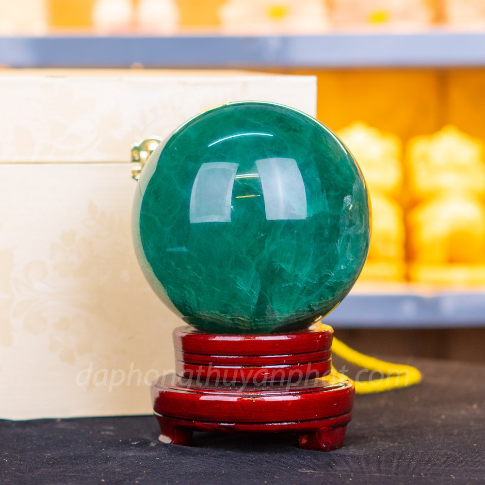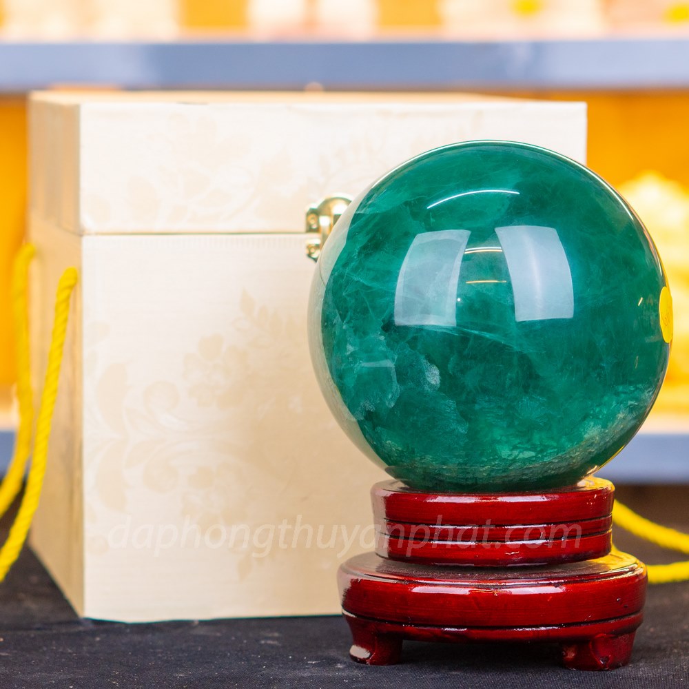 Qủa cầu đá Flourite xanh có ý nghĩa cầu tài cầu lộc. Chính vì thế những người trong giới kinh doanh thường trưng bày vật phẩm phong thủy này tại nơi làm việc, phòng khách, phòng đọc sách hay tại vị trí thu ngân.