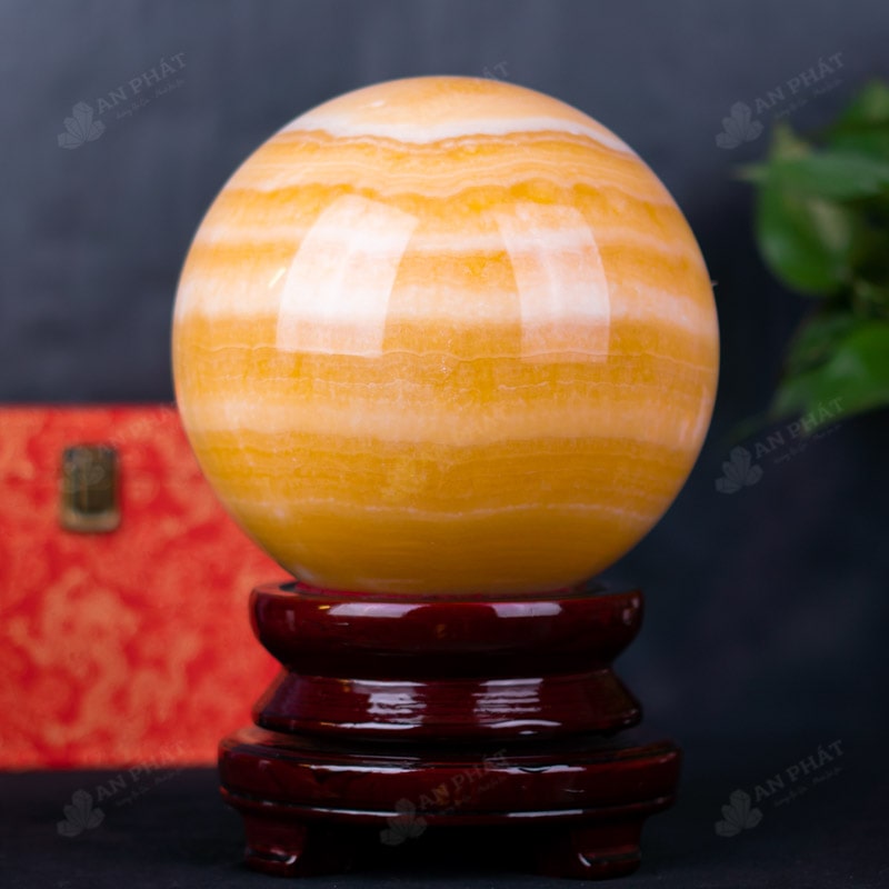 Ảnh cận cảnh quả cầu Ngọc Hoàng Long (Onyx) vàng