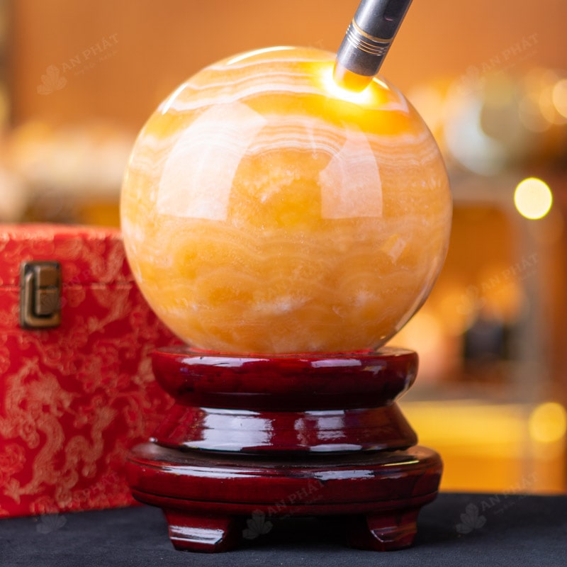 Quả Cầu Đá Phong Thủy Hoàng Long (Onyx) Vàng - 7,57kg - 15,8cm - M1836757