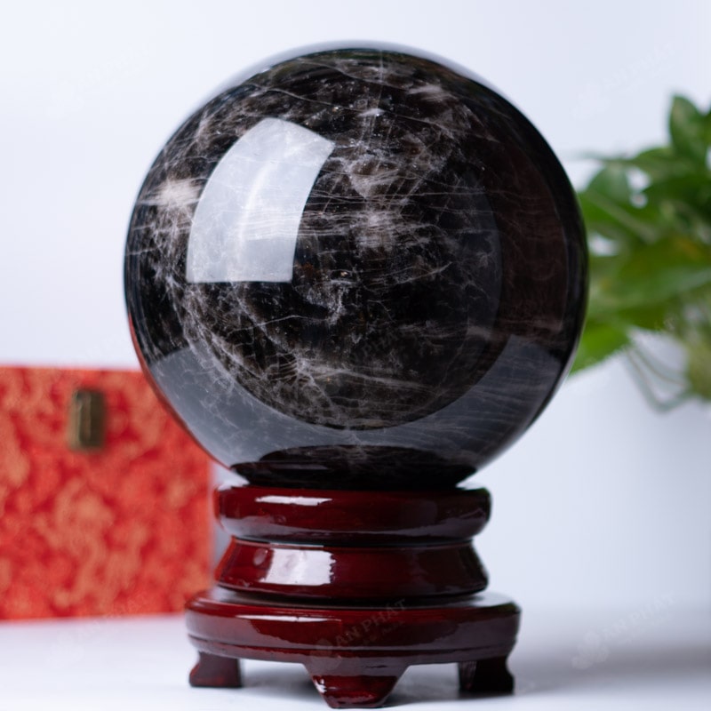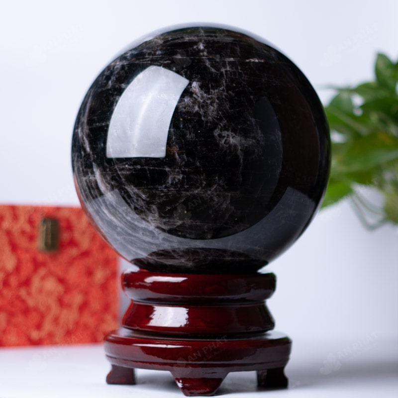 Ảnh cận cảnh quả cầu đá thạch anh đen