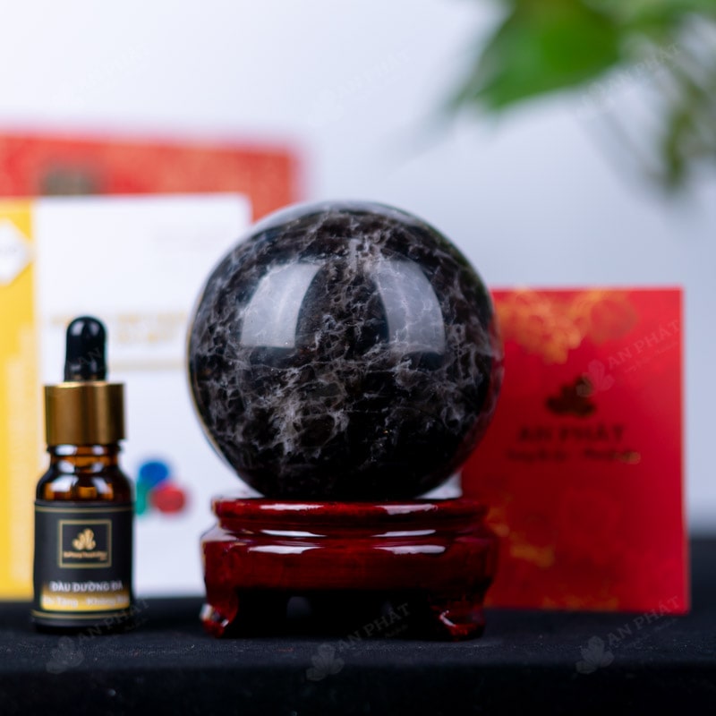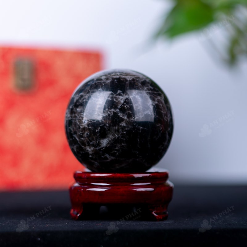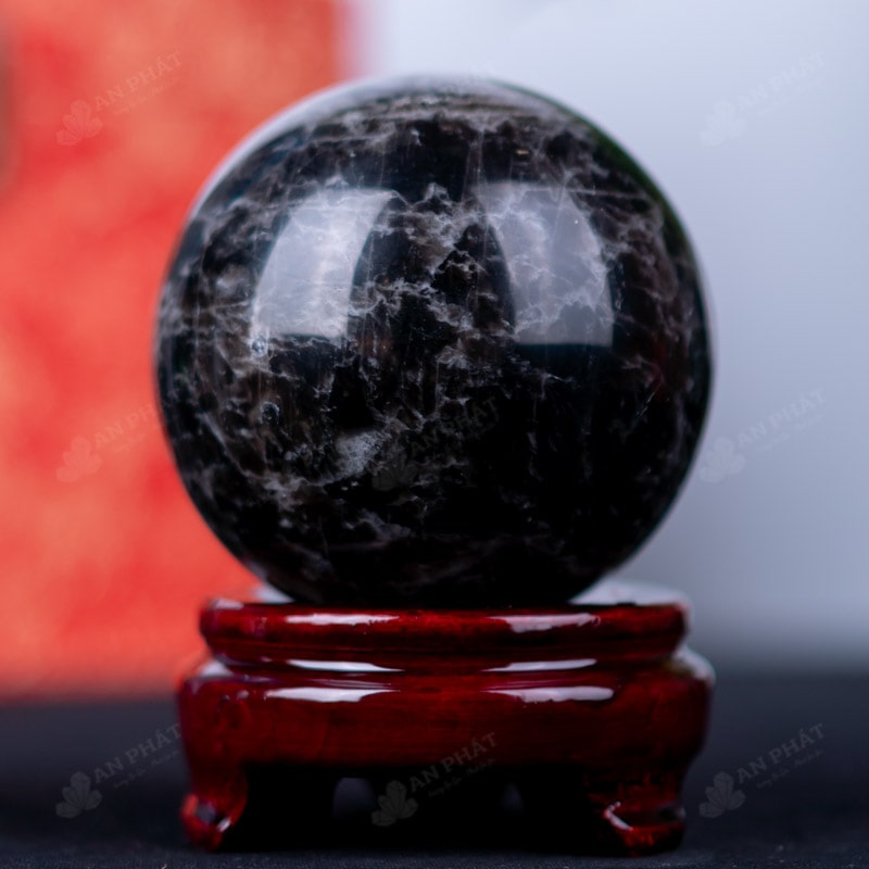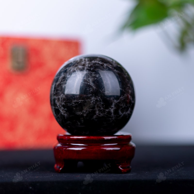Ảnh cận cảnh quả cầu đá thạch anh đen
