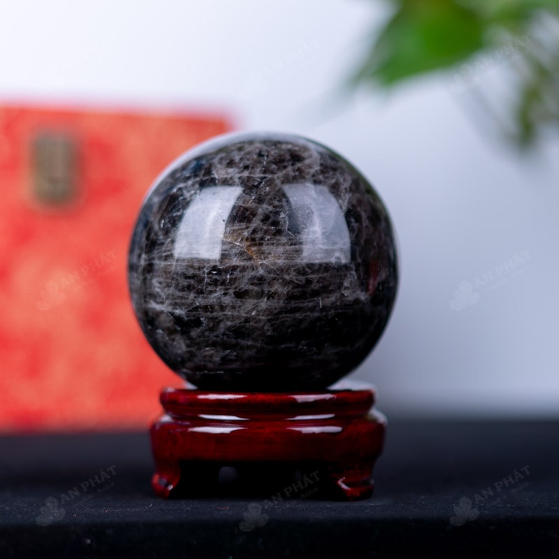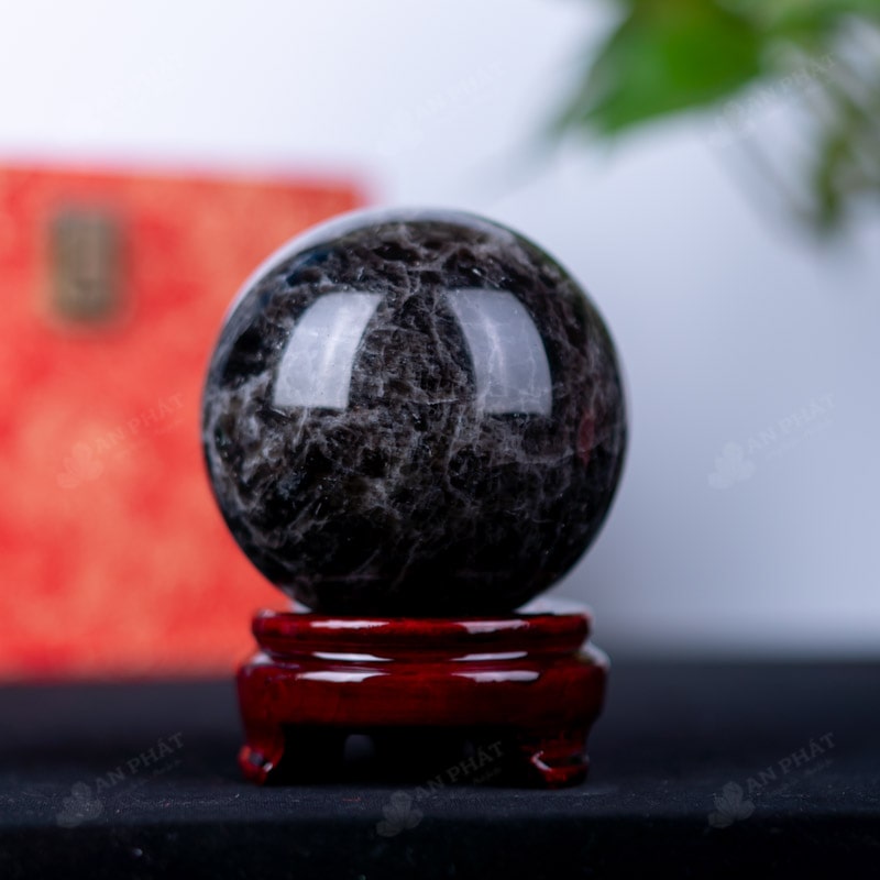 Ảnh cận cảnh quả cầu đá thạch anh đen