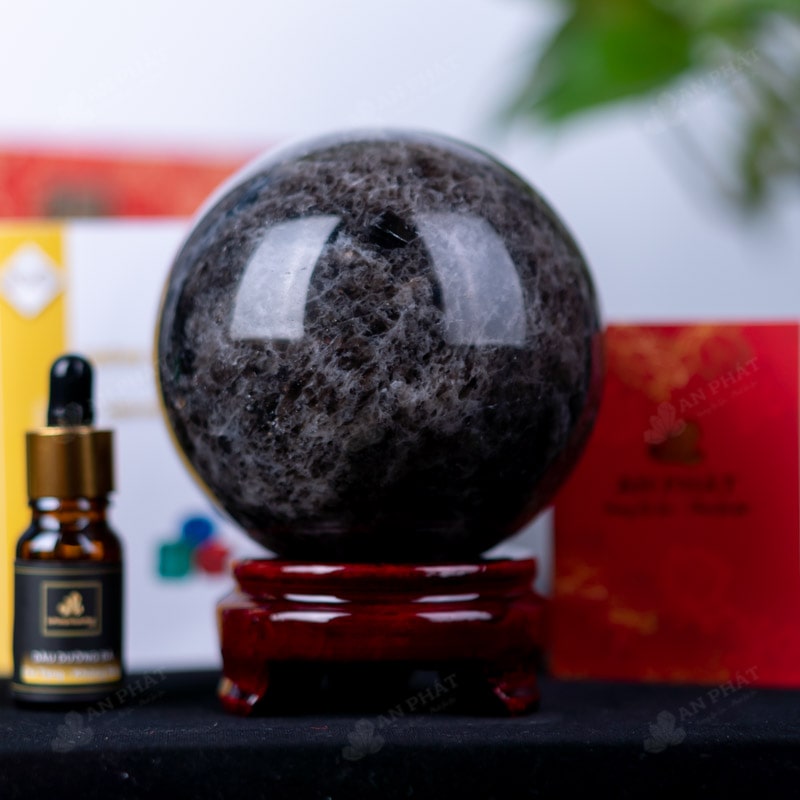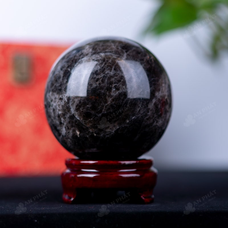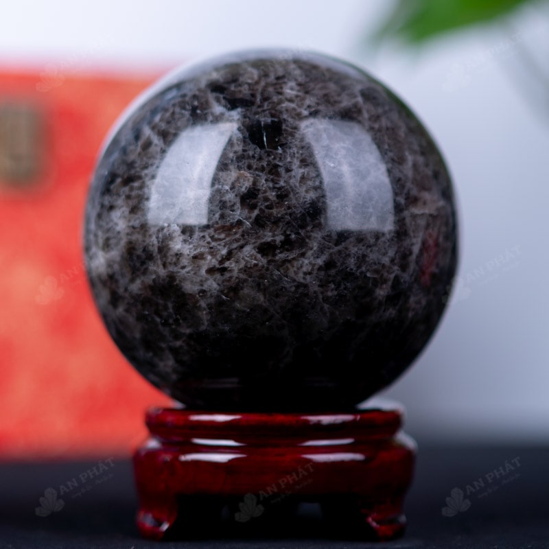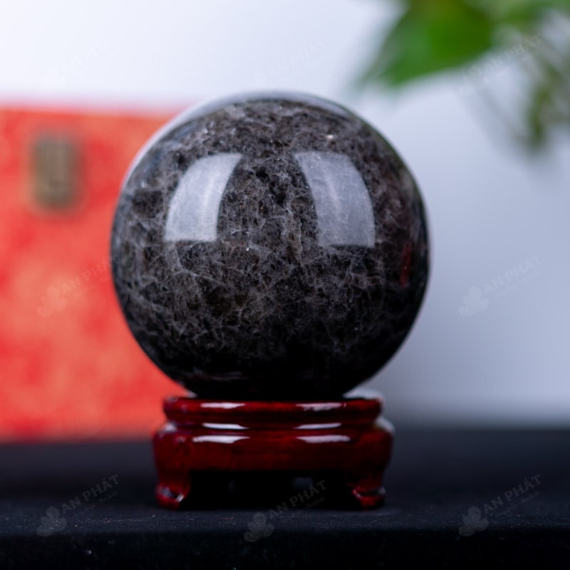 Ảnh cận cảnh quả cầu đá thạch anh đen