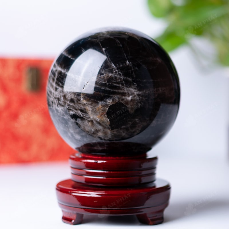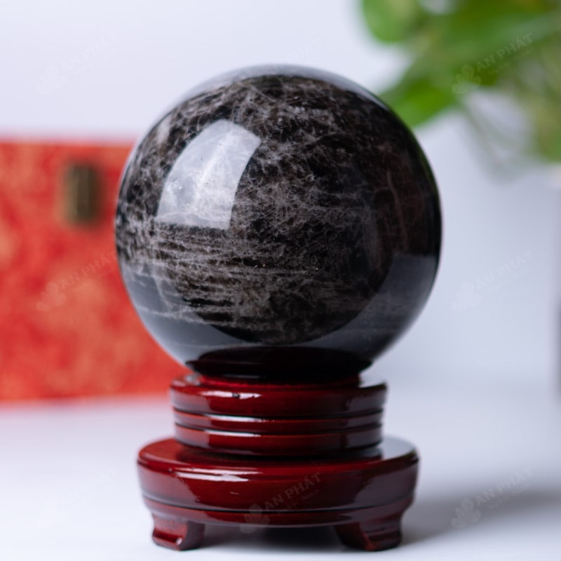 Ảnh cận cảnh quả cầu đá thạch anh đen