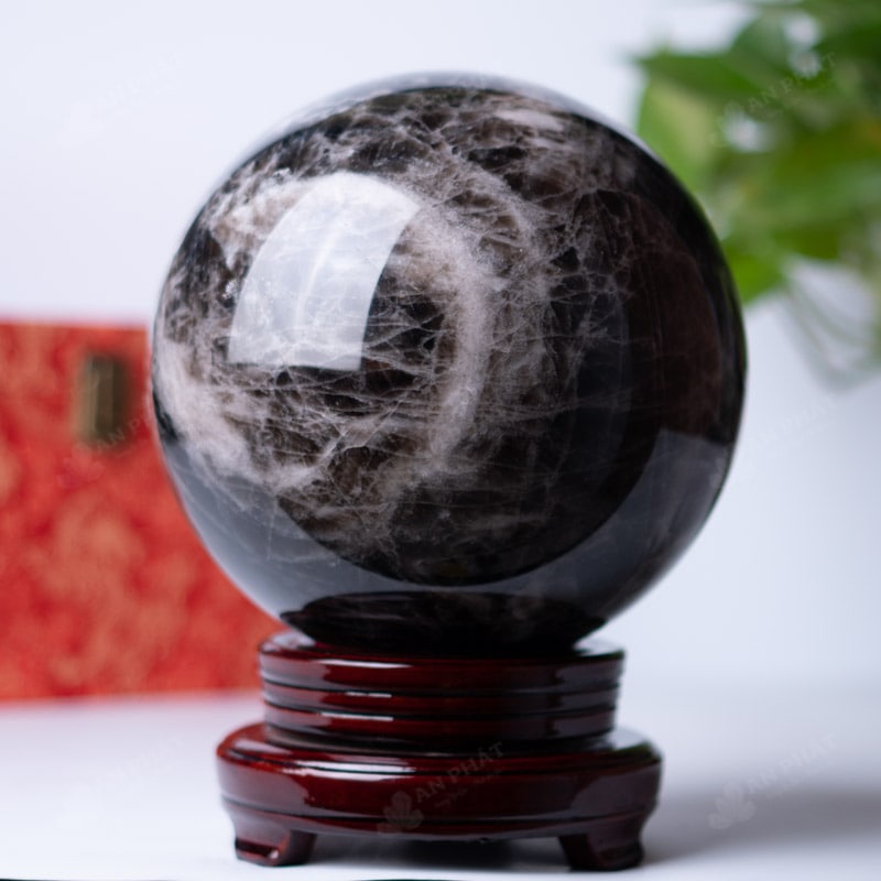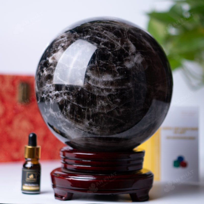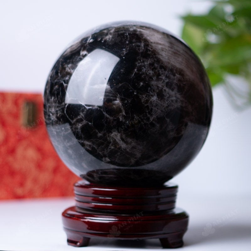Ảnh cận cảnh quả cầu đá thạch anh đen