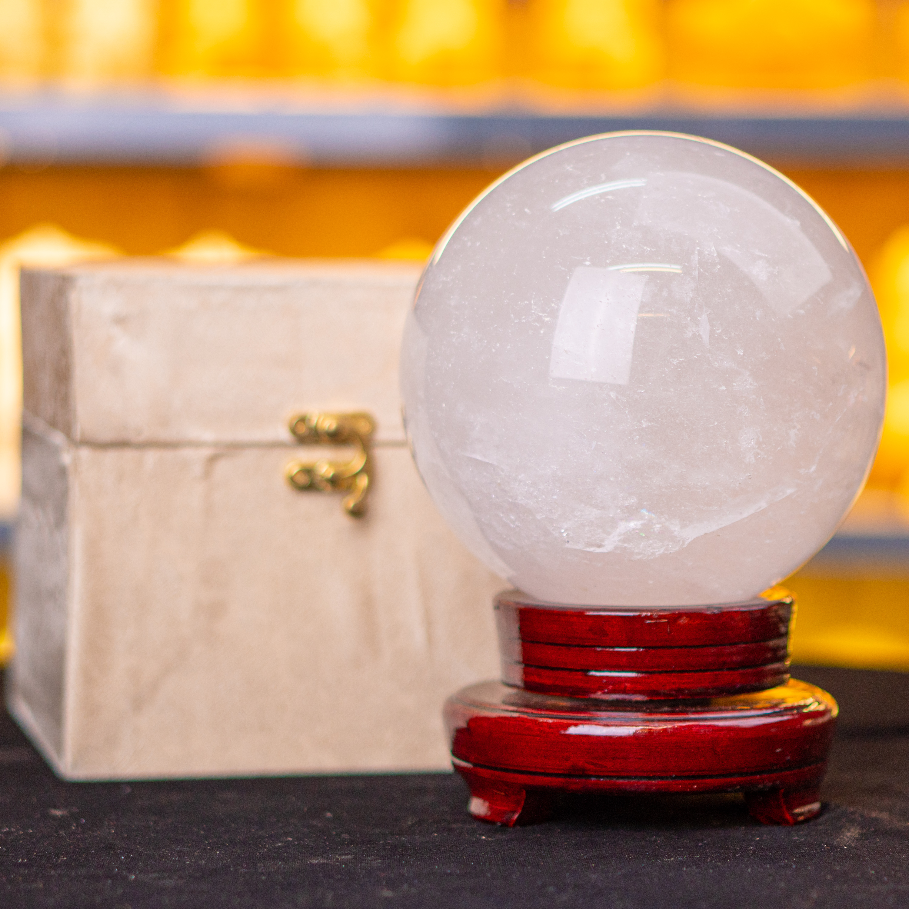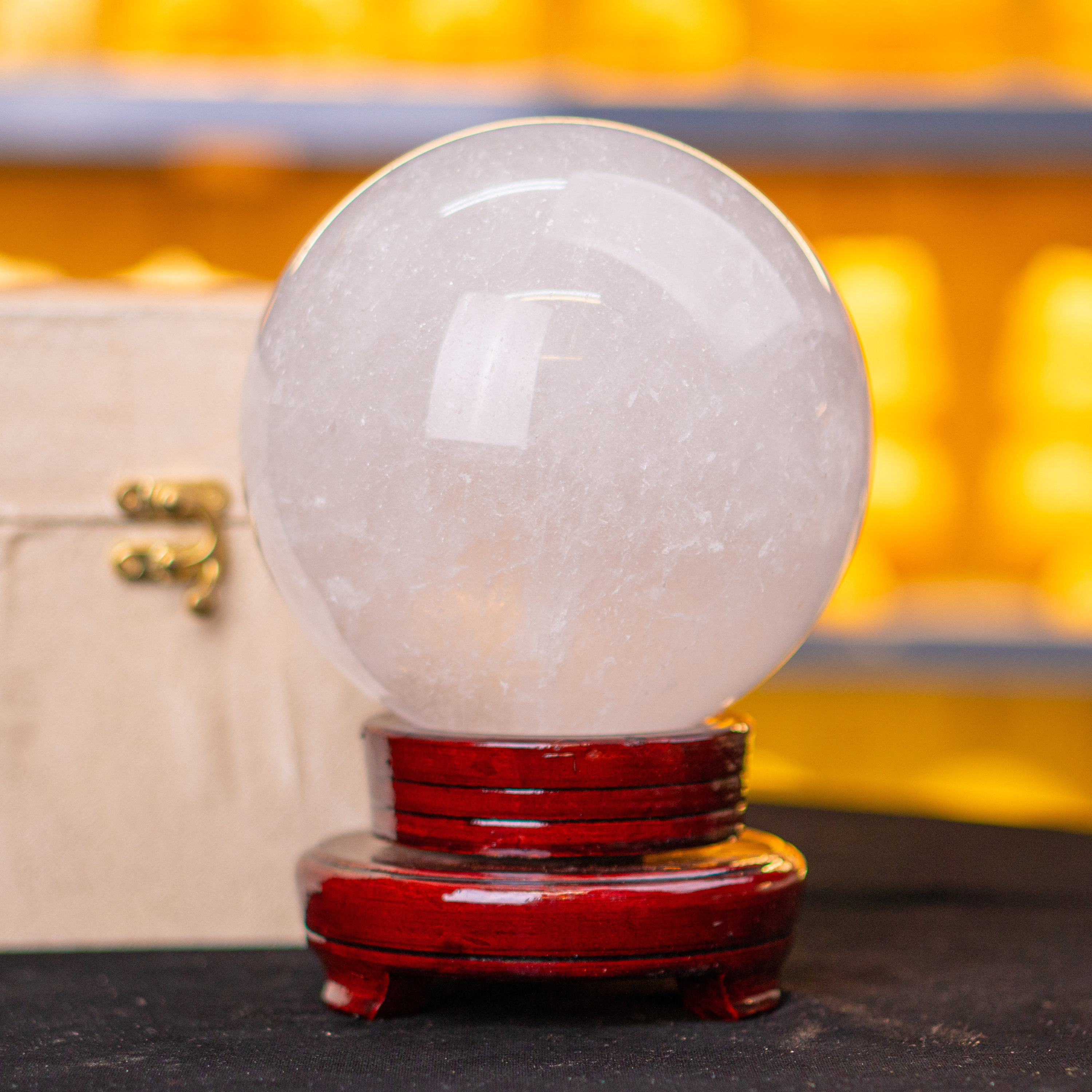 Qủa cầu phong thủy đá thạch anh trắng tại Đá Phong Thủy An Phát được chế tác tinh sảo, nhẵn bóng đồng thời tặng kèm hộp đựng vô cùng đep măt. Là món quà tặng vô cùng sang trọng dành tặng người thân, bạn bè hay mang đi kính biếu.