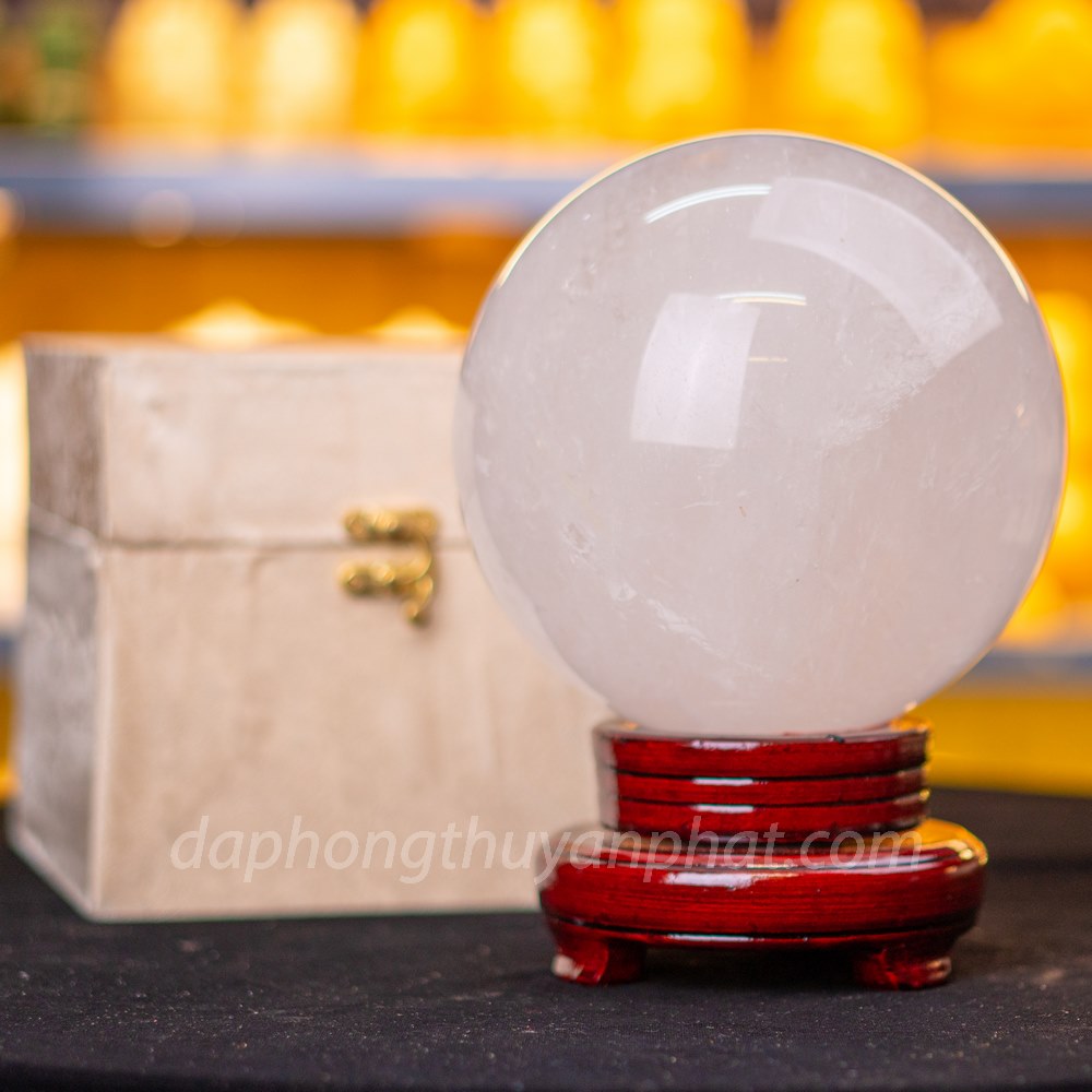 Qủa cầu phong thủy đá thạch anh trắng hỗ trợ rất tốt trong việc cải thiện tâm trạng, tăng cường sự tập trung. Đồng thời thu hút tài lộc đem đến cho doanh nghiệp sự thuận lợi trong buôn bán, làm ăn.
