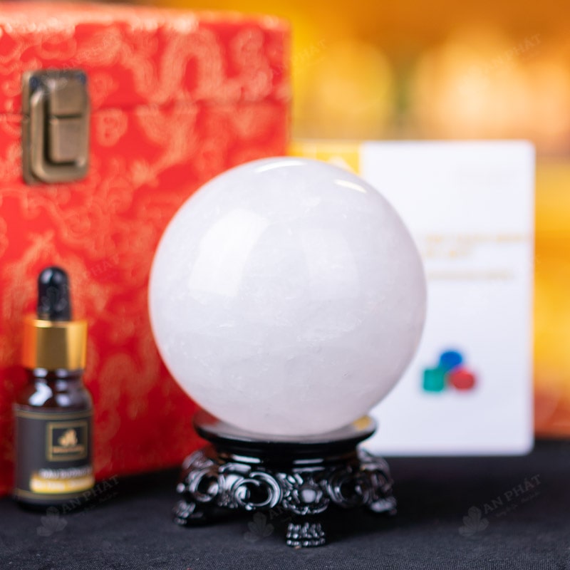 - Trọn bộ sản phẩm bao gồm: quả cầu + 01 đế gỗ + hộp đựng sang trọng + túi giấy sang trọng + dầu dưỡng đá + giấy kiểm định chất lượng đá