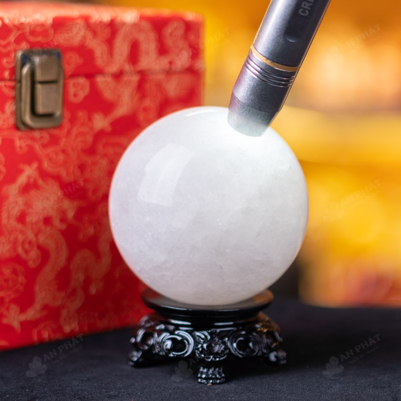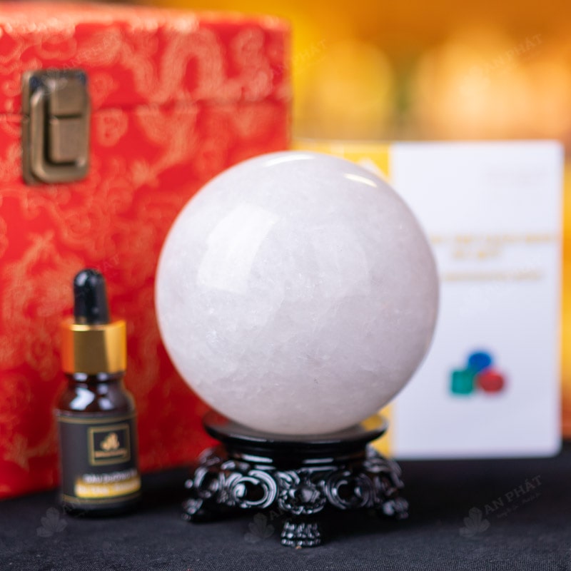 - Trọn bộ sản phẩm bao gồm: quả cầu + 01 đế gỗ + hộp đựng sang trọng + túi giấy sang trọng + dầu dưỡng đá + giấy kiểm định chất lượng đá