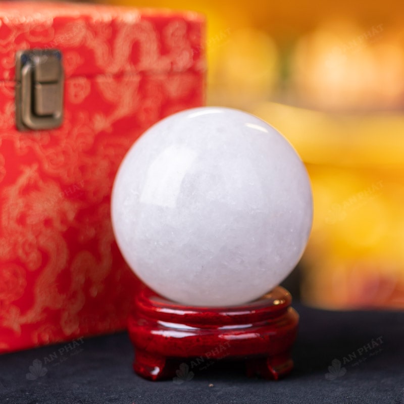 Ảnh cận cảnh quả cầu đá thạch anh trắng