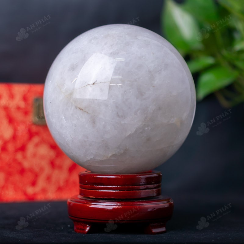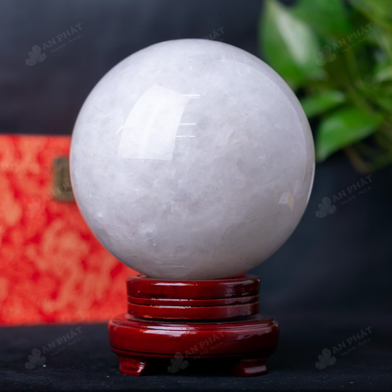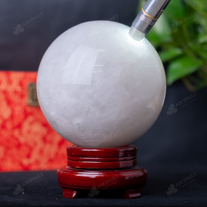 Ảnh cận cảnh quả cầu đá thạch anh trắng