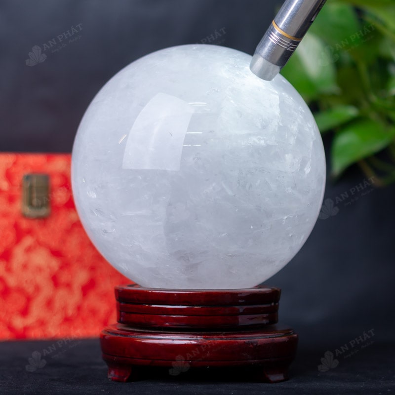 Ảnh cận cảnh quả cầu đá thạch anh trắng