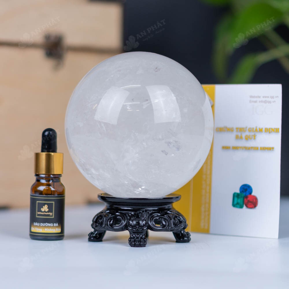 - Trọn bộ sản phẩm bao gồm: quả cầu + đế gỗ + hộp đựng sang trọng + túi giấy sang trọng + dầu dưỡng đá + giấy kiểm định chất lượng đá