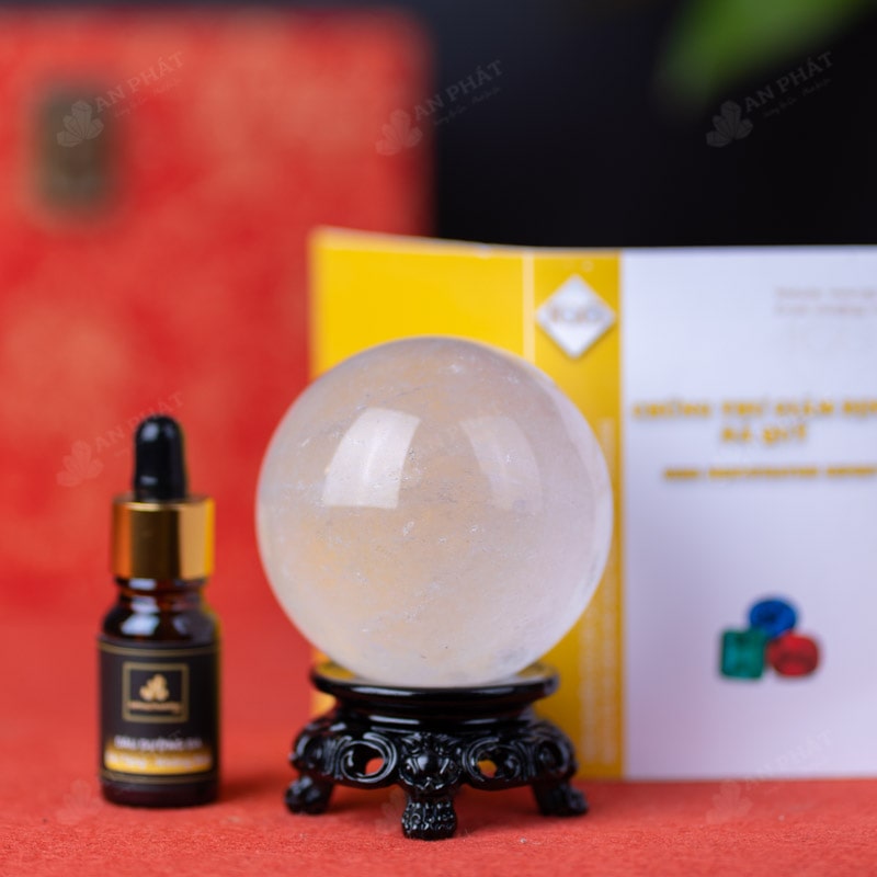 - Trọn bộ sản phẩm bao gồm: quả cầu + 01 đế gỗ + hộp đựng sang trọng + túi giấy sang trọng + dầu dưỡng đá + giấy kiểm định chất lượng đá