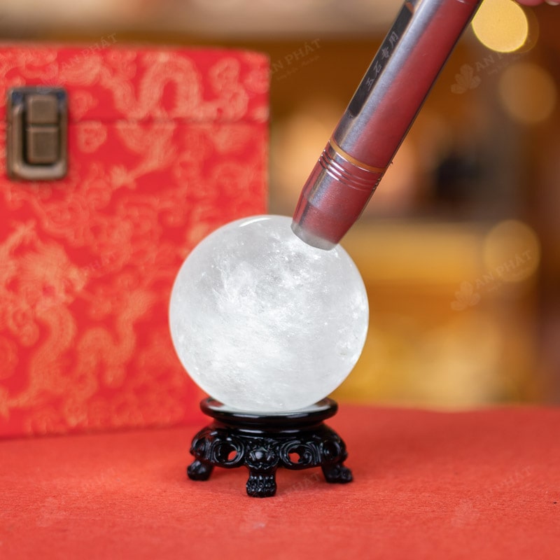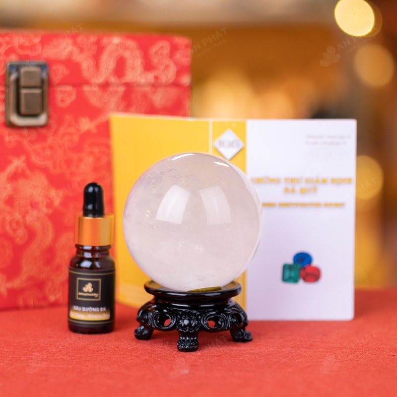 - Trọn bộ sản phẩm bao gồm: quả cầu + 01 đế gỗ + hộp đựng sang trọng + túi giấy sang trọng + dầu dưỡng đá + giấy kiểm định chất lượng đá