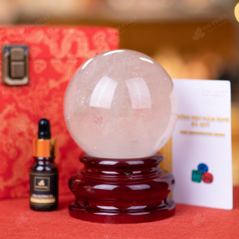 - Trọn bộ sản phẩm bao gồm: quả cầu + 01 đế gỗ có đèn + hộp đựng sang trọng + túi giấy sang trọng + dầu dưỡng đá + giấy kiểm định chất lượng đá
