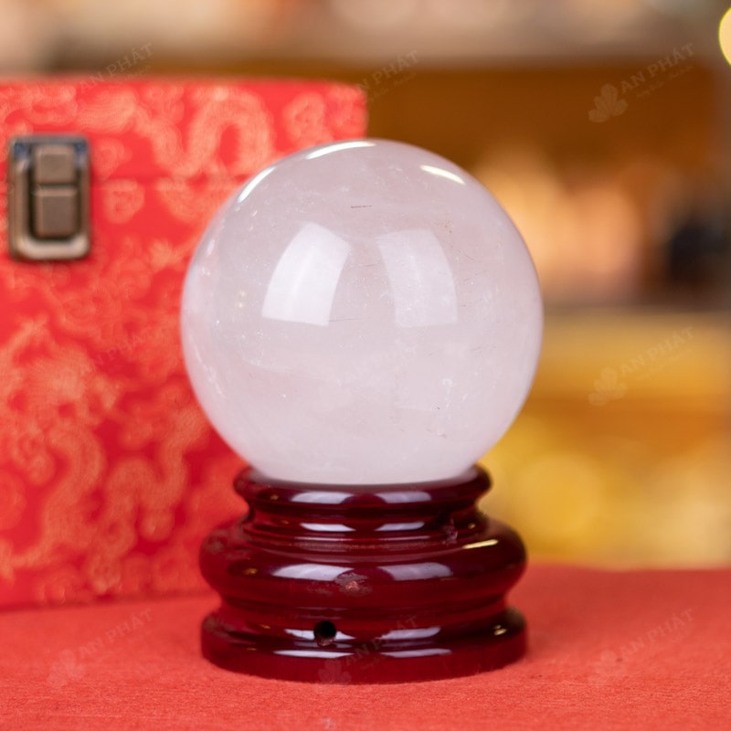 Ảnh cận cảnh quả cầu đá thạch anh trắng
