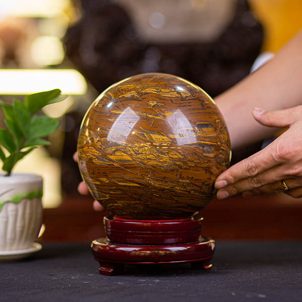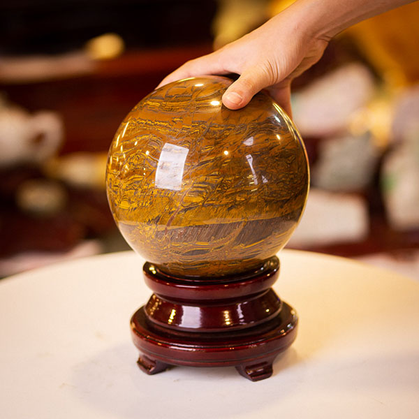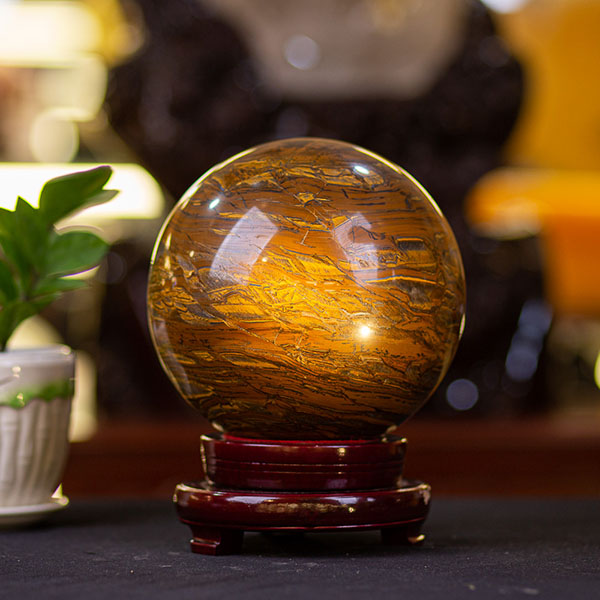 Quả cầu đá mắt hổ ngày nay thường được trưng bày vừa làm vật dụng trang trí trong nhà tăng sự sang trọng, còn là vật dụng phong thủy giúp các thành viên trong gia đình gặp may mắn thuận lợi trong công việc, học tập và cuộc sống.