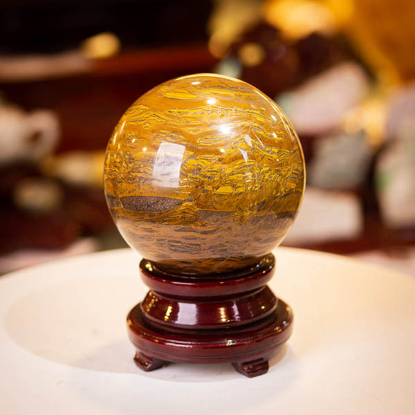 Quả cầu đá mắt hổ phù hợp với mệnh Thổ và mệnh Kim