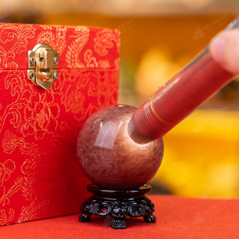 - Trọn bộ sản phẩm bao gồm: quả cầu + 01 đế gỗ + hộp đựng sang trọng + túi giấy sang trọng + dầu dưỡng đá + giấy kiểm định chất lượng đá