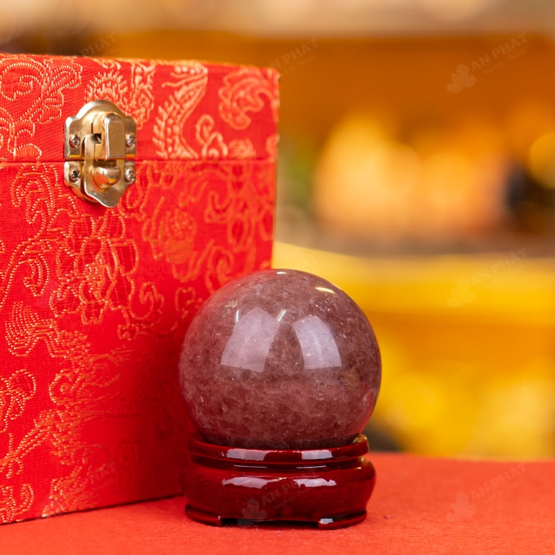 Ảnh cận cảnh quả cầu thạch anh dâu tây hồng