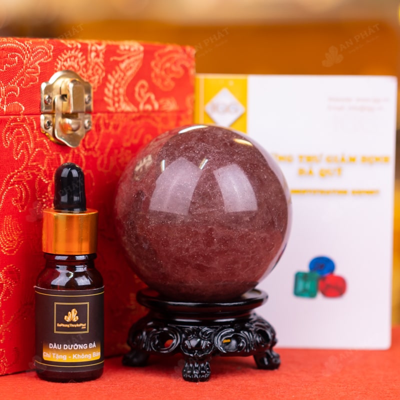 - Trọn bộ sản phẩm bao gồm: quả cầu + 01 đế gỗ + hộp đựng sang trọng + túi giấy sang trọng + dầu dưỡng đá + giấy kiểm định chất lượng đá
