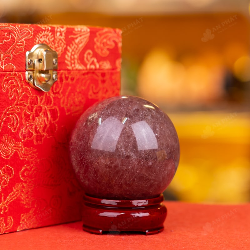 Ảnh cận cảnh quả cầu thạch anh dâu tây hồng