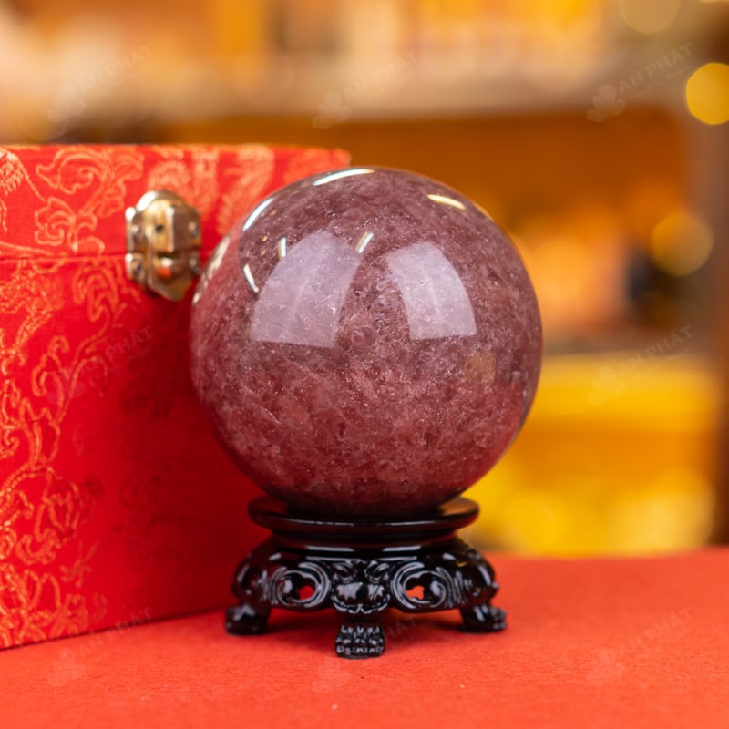 Ảnh cận cảnh quả cầu thạch anh dâu tây hồng